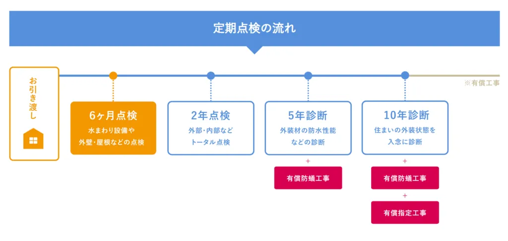 次は2年点検があって、その後の5年診断から有償の工事が発生します。