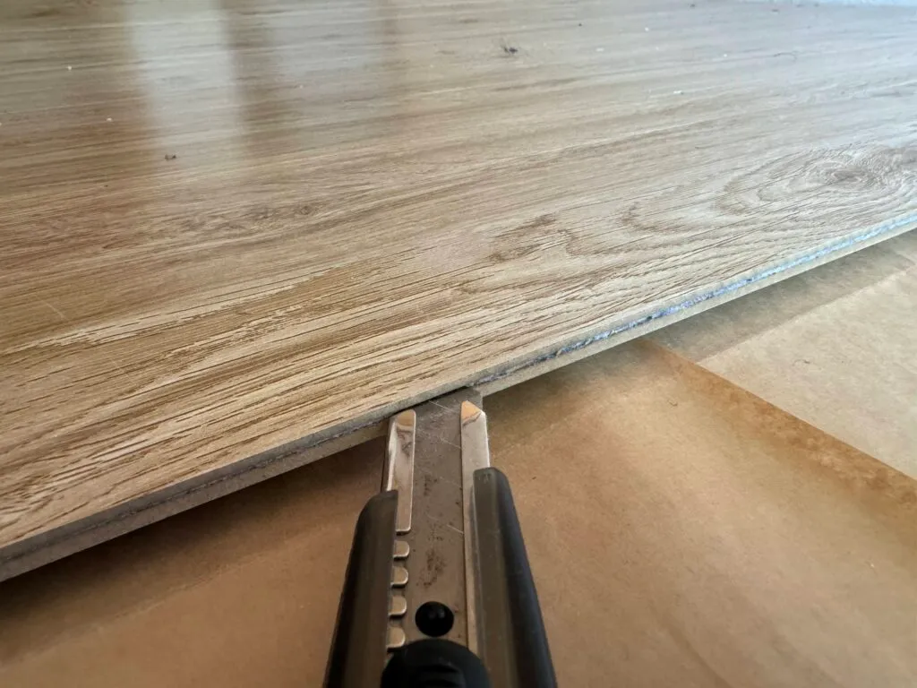 ウッドカーペットの裏地を切るわけですが、フェルトなのでわりとすぐに切れます。